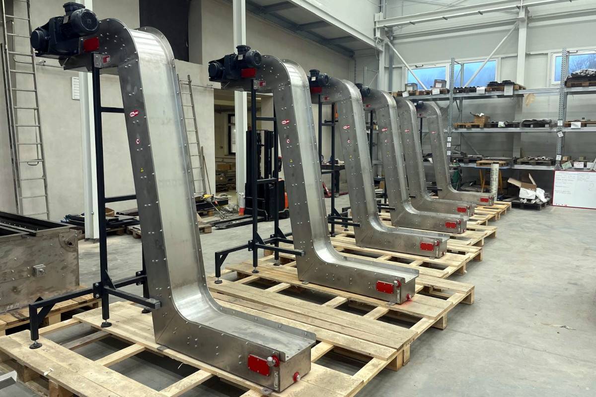 Les convoyeurs magnétiques articulés sont utilisés pour le transport vertical d'objets ferreux. Ils seront utilisés là où il est nécessaire de transporter les pièces entre différentes hauteurs. Pour que nous puissions correctement spécifier le convoyeur magnétique, nous devrons connaître non seulement les dimensions, la masse et la quantité de pièces à transporter, mais aussi la hauteur de départ et la hauteur cible.