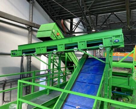 Cette ligne de triage automatique sert à trier les déchets provenant des « poubelles jaunes », soit des bouteilles en PET, des canettes et boîtes de conserve en aluminium et en fer. Sa capacité est de 1 200 kg/heure.