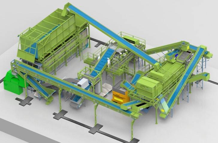 - Ligne de triage servant à trier des déchets en plastique – PET 2D et 3D, canettes et boîtes de conserve en aluminium et en fer