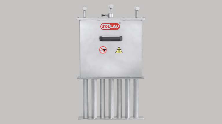 Le nettoyage de la grille de séparation magnétique s'effectue en déplaçant les noyaux magnétiques au néodyme (par levier manuel ou pneumatique) vers la partie supérieure du séparateur. Les impuretés magnétiques, capturées sur les tubes de protection, tombent ensuite d'elles-mêmes. Grâce à la structure du séparateur entièrement en acier inoxydable, les noyaux au néodyme ne nécessitent aucun entretien.